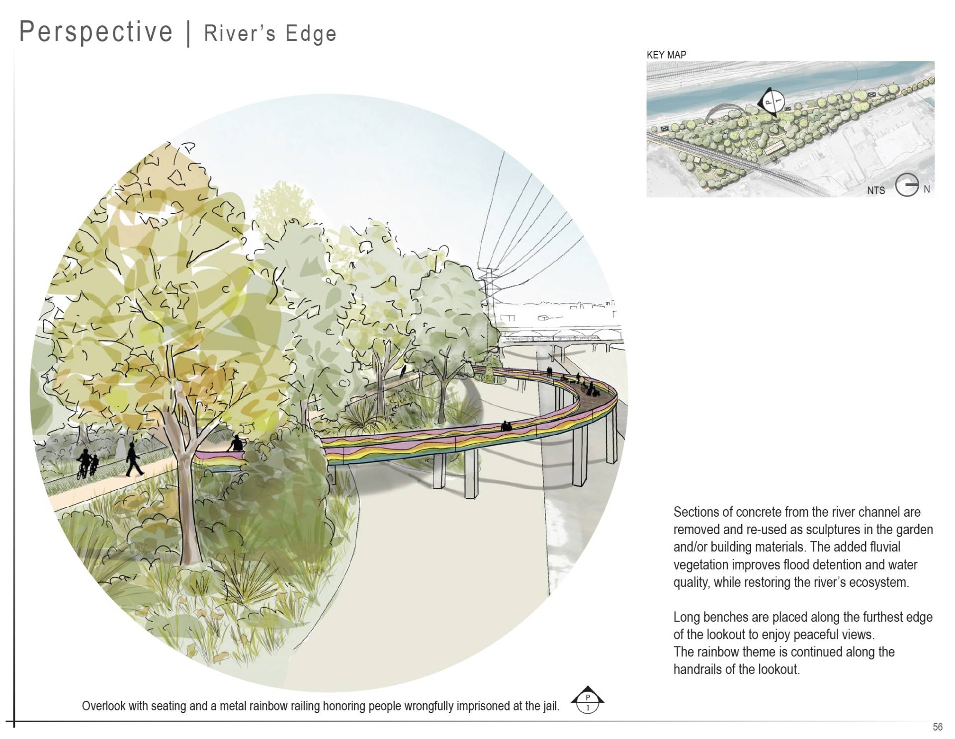 Once a symbol of confinement and systemic injustice, the Lincoln Heights Jail is transformed into a thriving landscape of regeneration—where land, water, air and community are restored. Through phytoremediation, riparian habitat restoration, and stormwater filtration, the degraded environment is rehabilitated, addressing long-standing pollution and ecological scars. In addition, the site becomes a platform for community empowerment, mending the social fabric frayed by systemic injustice. This revitalized landscape creates a dynamic public space that supports environmental renewal, climate resilience, and social healing.