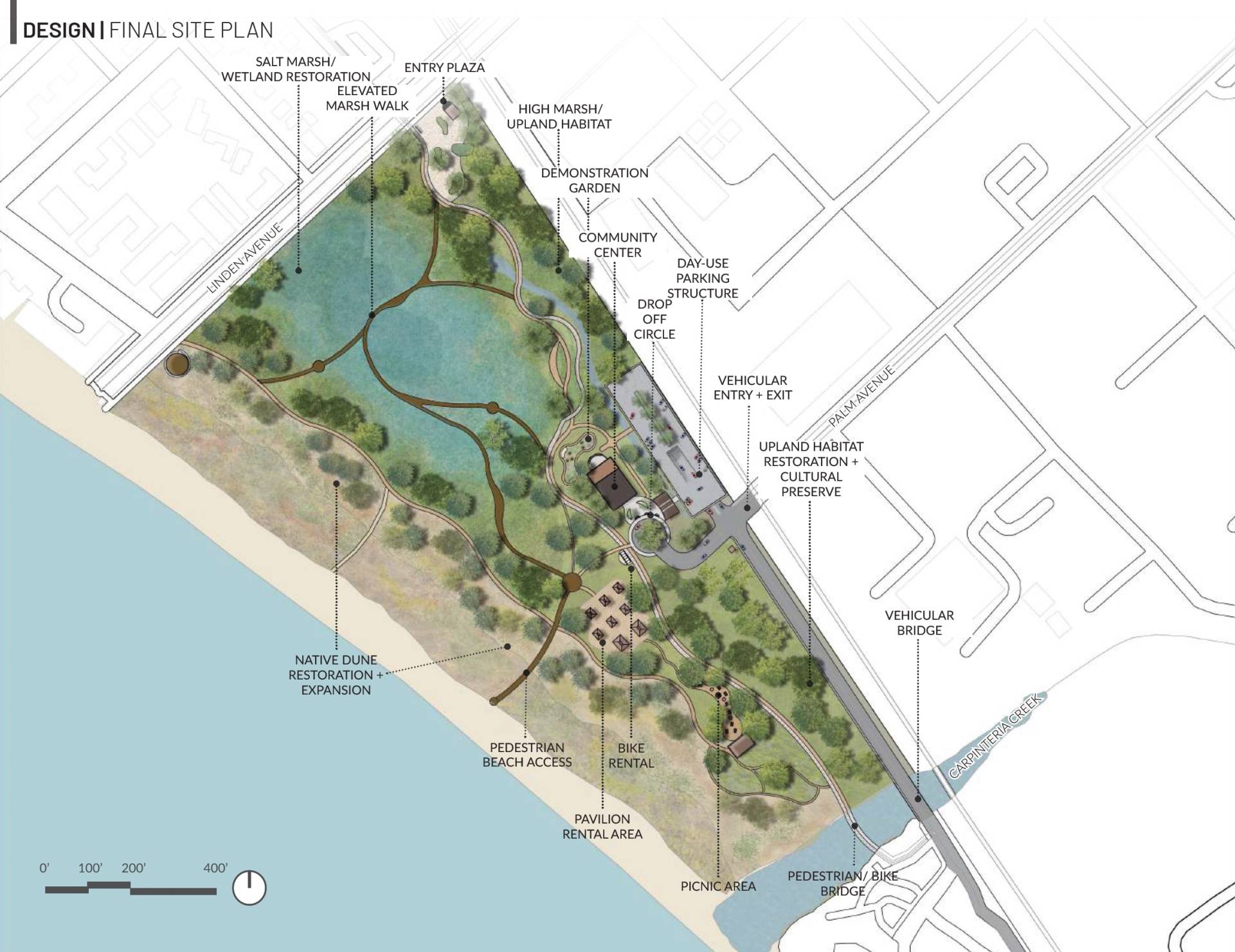 As climate change reshapes California’s coastline, this project serves as a model for adapting coastal landscapes while balancing environmental, social, and economic priorities. By restoring natural coastal processes, relocating vulnerable infrastructure, increasing wildlife habitat, and improving connectivity within Carpinteria State Beach, this project proposes a resilient and accessible waterfront for future generations.