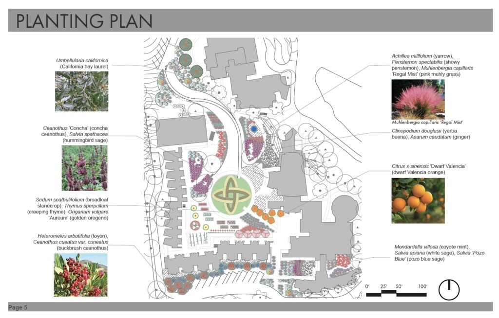 Inspired by the Sisters of Social Service’s commitment to welcoming diverse people, this design uses the universe as a guiding theme to convey unity, acceptance, and spiritual healing, universal human challenges and experiences. The Celestial Garden is composed of three distinct areas: the Zen gardens for quiet contemplation in which all plants have a secondary purpose either culturally, medicinally, or edible; the Water gardens to promote energy and vitality among visitors while providing habitat for local wildlife; and the Nourishing gardens with citrus groves, raised beds, espaliered walkways, and an herbal tea meadow, which offer a therapeutic gardening experience and providing food for residents and visitors.