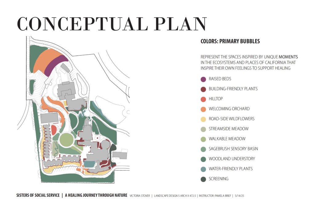 Redesign a portion of Sisters of Social Service site. Consider plant palette and plant placement.