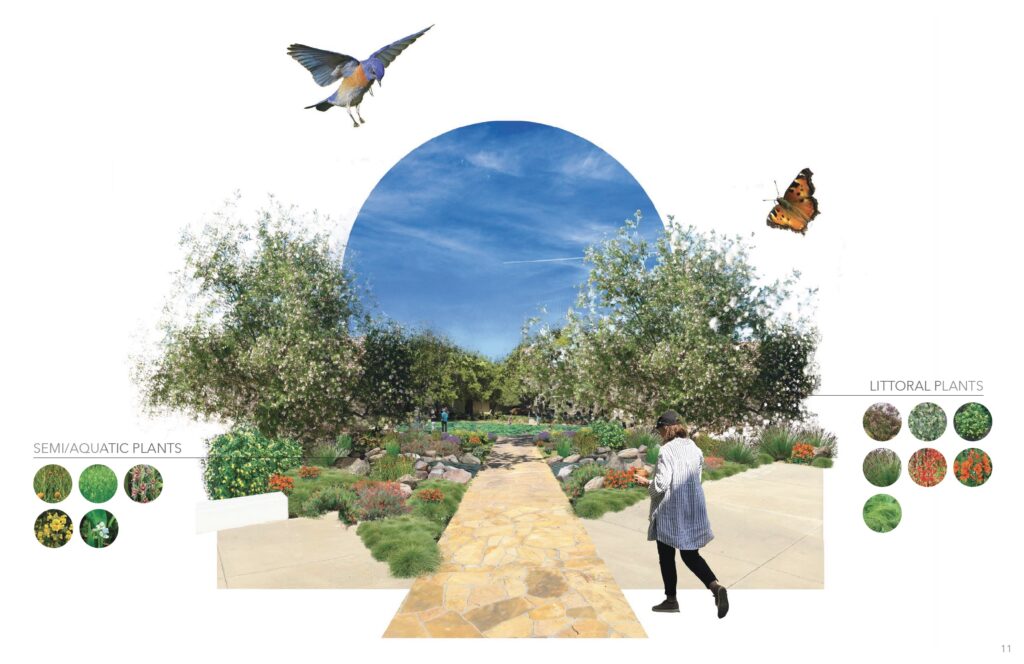 The big idea of my garden is to extend an extravagant welcome to anyone who visits, to extend hospitality with a nourishing garden and place for reflection and recovery with healing gardens and water features. The gardens are a place of abundance, with healthy foods grown on site to be enjoyed during community gatherings. The gardens rely primarily on California native plants to create an inviting setting for both people, birds, and wildlife.