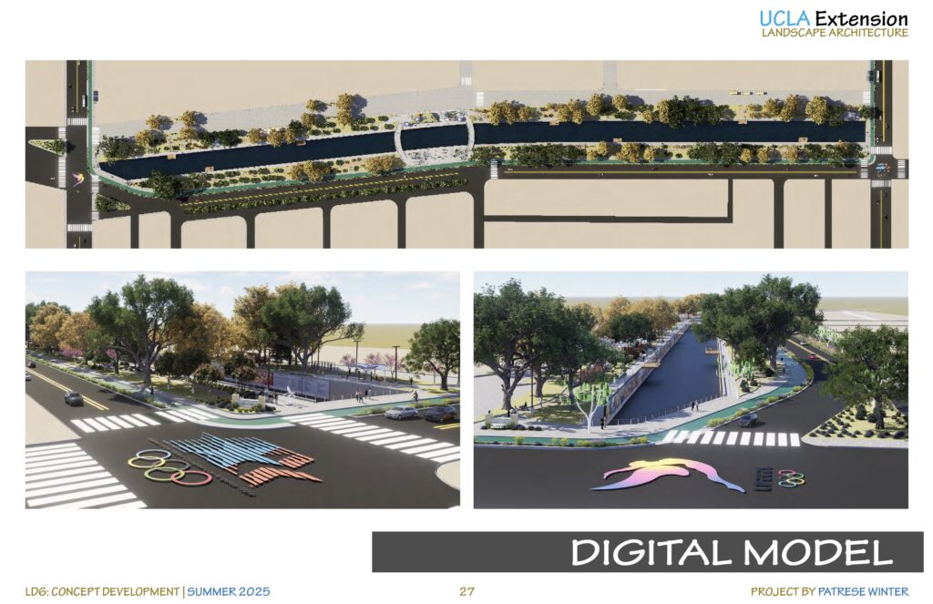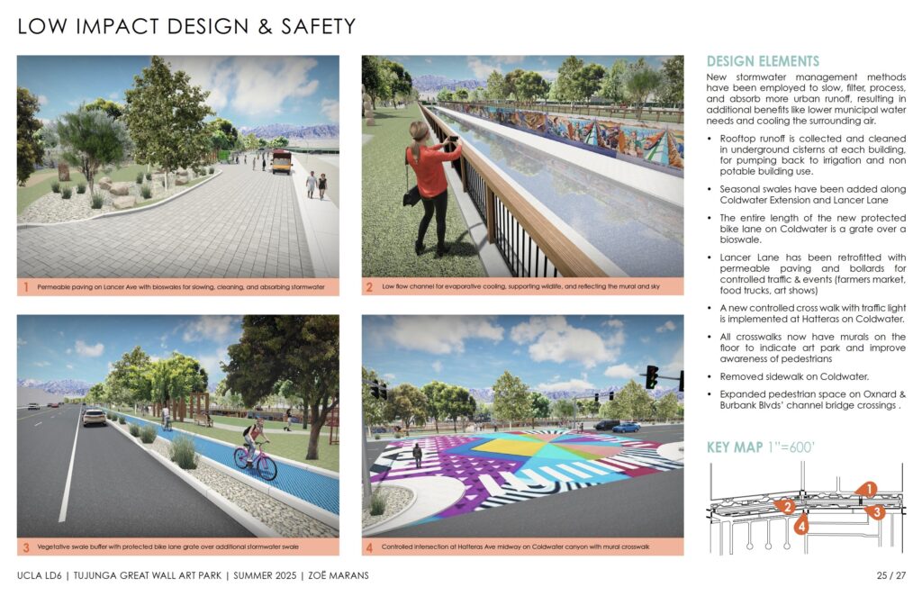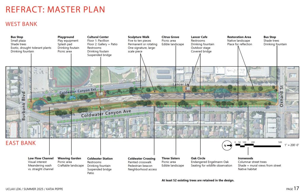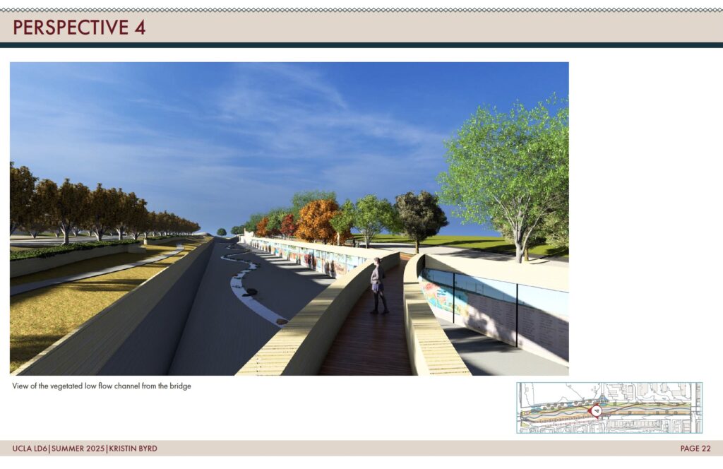 This is a reimagined design along a 1/2 mile stretch of the parkland surrounding the Tujunga Wash in the San Fernando Valley.